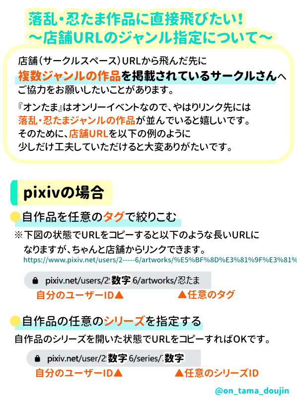 pictSQUARE『MYイベント』 > オンたま2『参加申込詳細』 > 『参加申し込み情報の修正』>『出店区分/通販サイトURL(ストアコード)』からいつでも変更できます。
