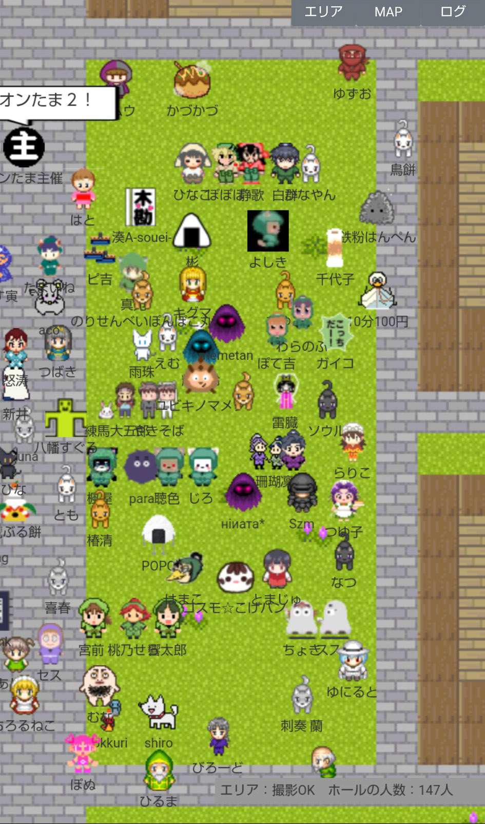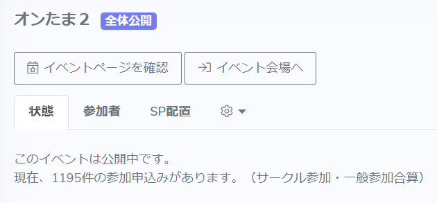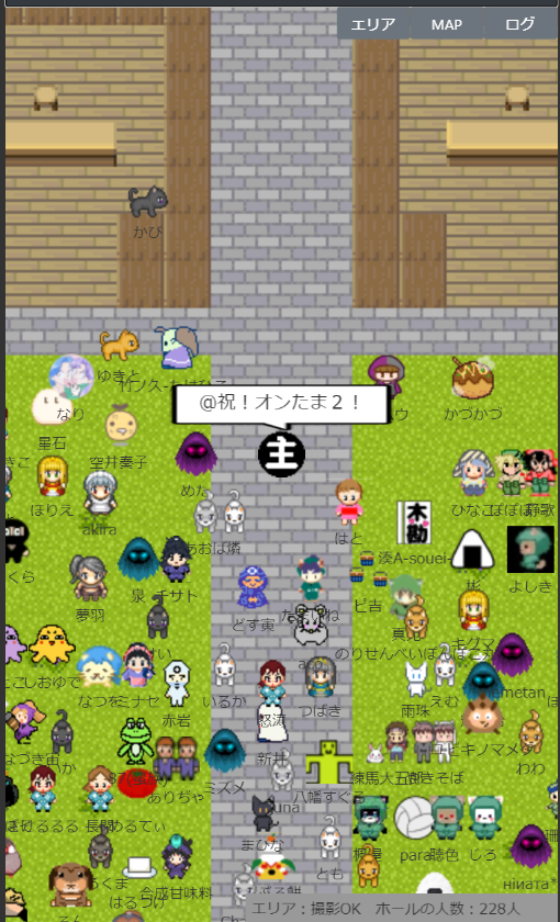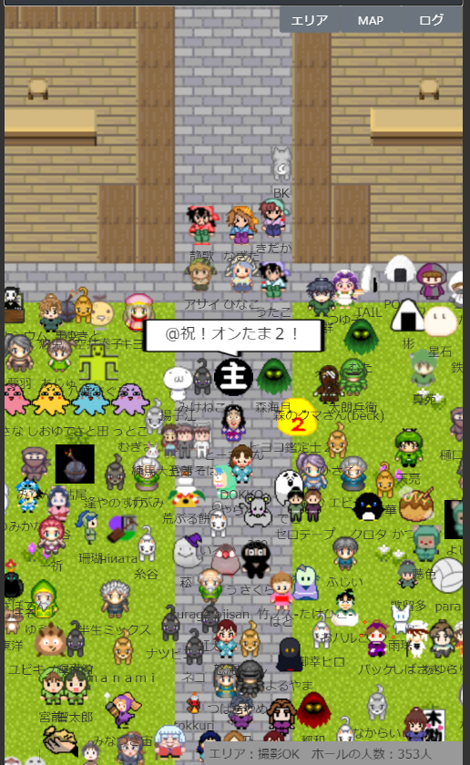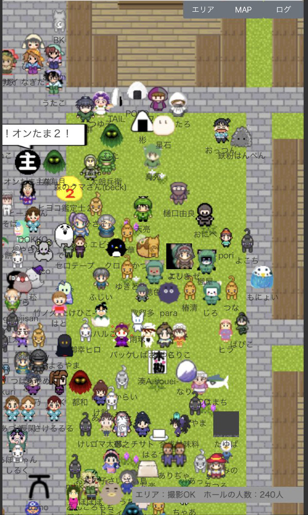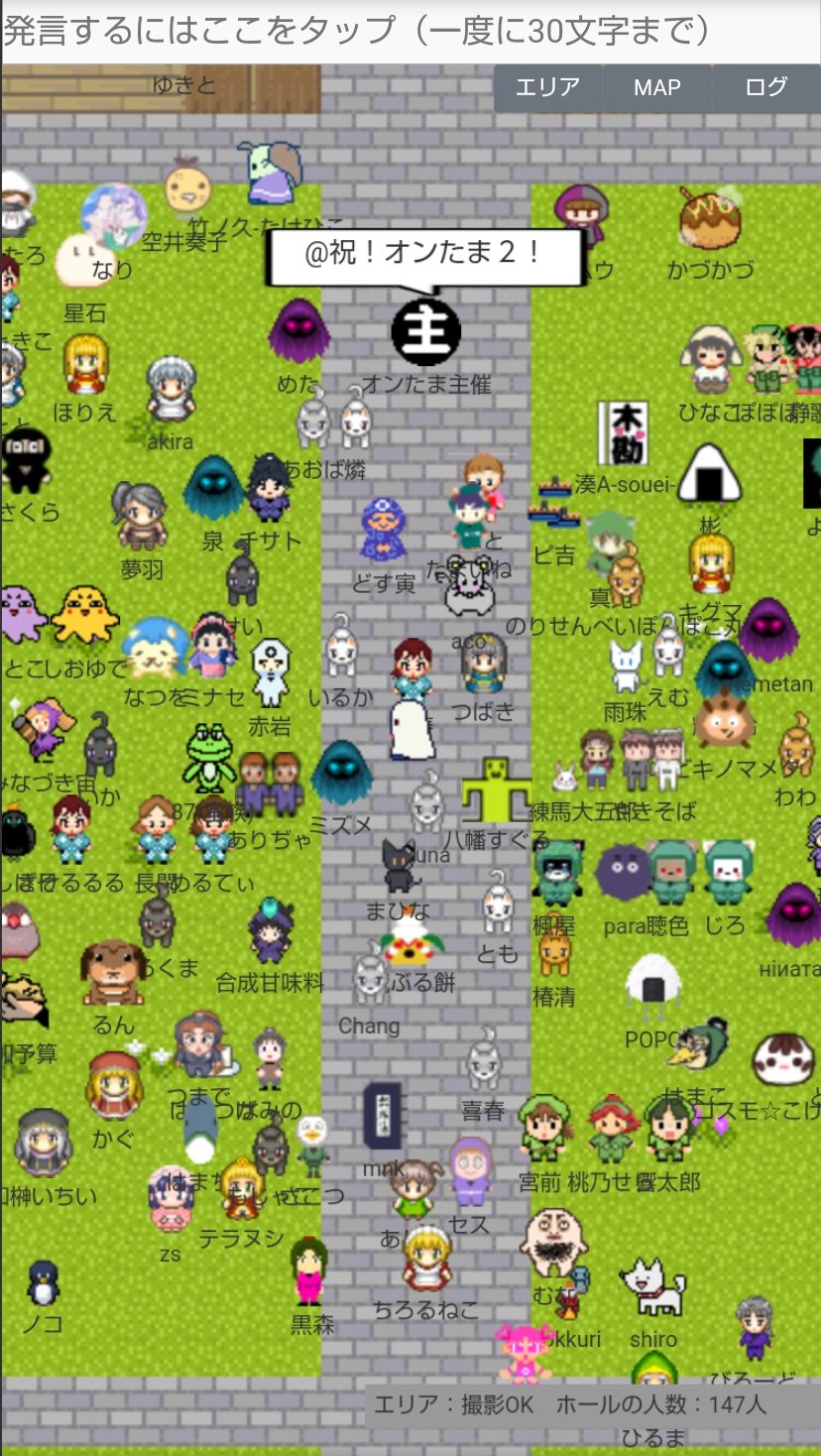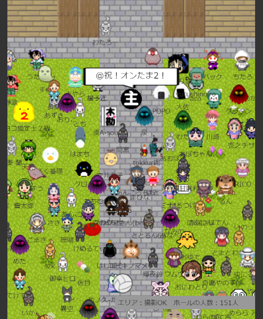 なお、当日会場にログインすると右下に「エリア:(エリア名) ホールの人数:◎人」という表示が出ますが、この数字はとても流動的(数秒で表示が何十人単位で変わる)で、エリア単位かイベント合計なのかも不明確でしたので『オンたま2』では参考にしていません。