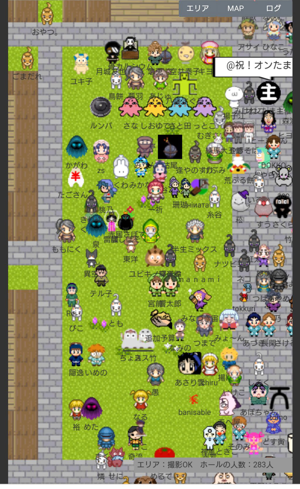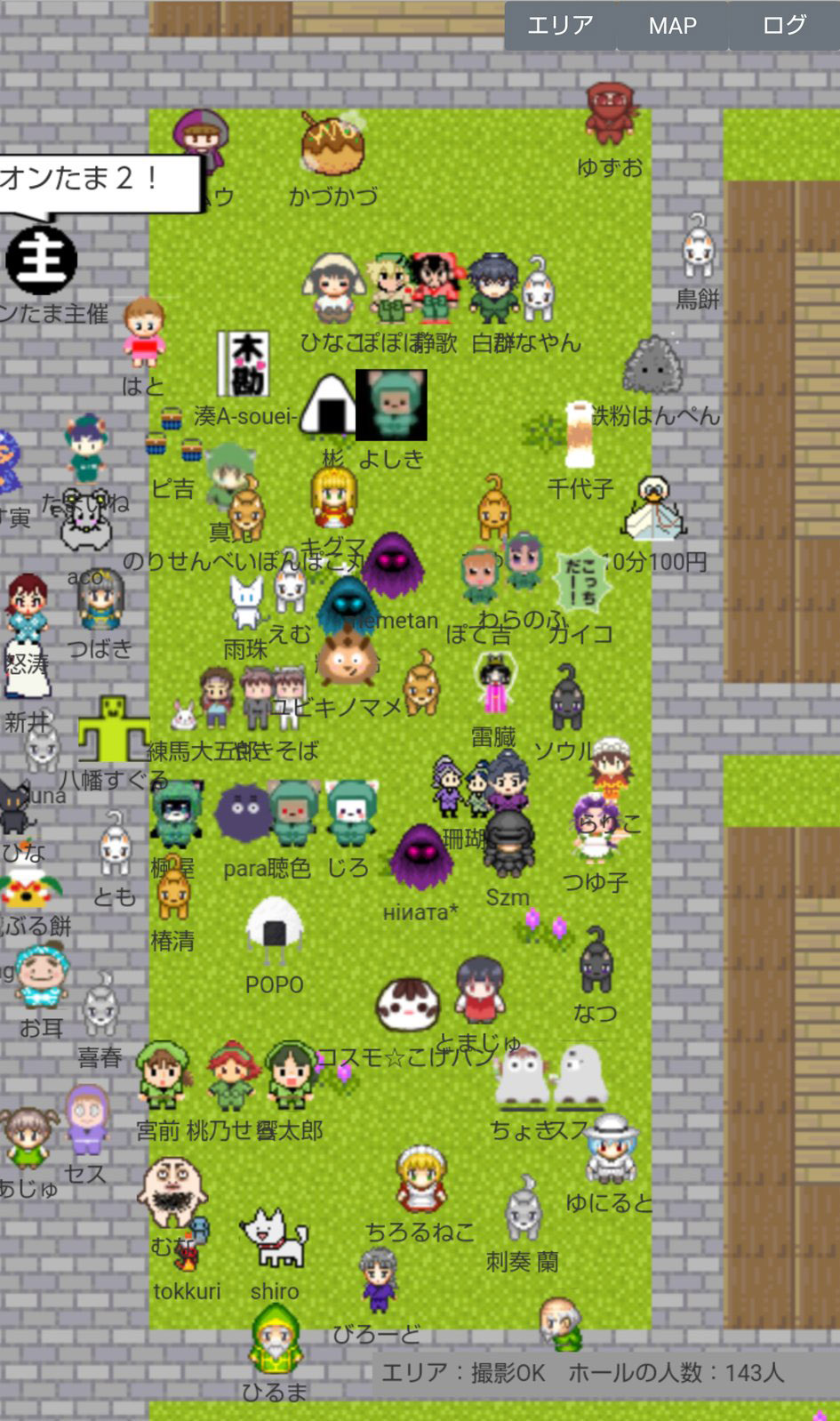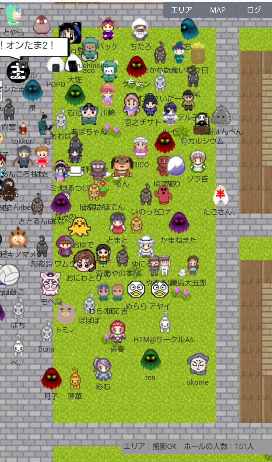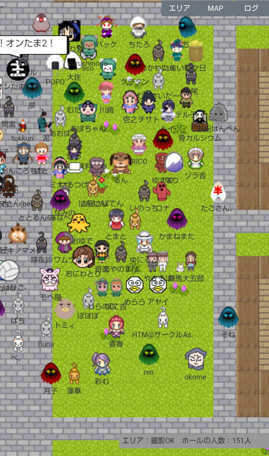 なお、当日会場にログインすると右下に「エリア:(エリア名) ホールの人数:◎人」という表示が出ますが、この数字はとても流動的(数秒で表示が何十人単位で変わる)で、エリア単位かイベント合計なのかも不明確でしたので『オンたま2』では参考にしていません。