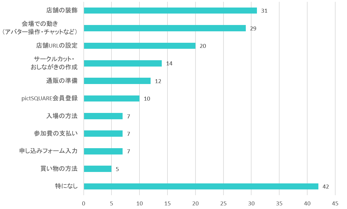 ● 改善要望→特になし/解消したこと→アバターや店舗作成の方法、分岐ページの作り方