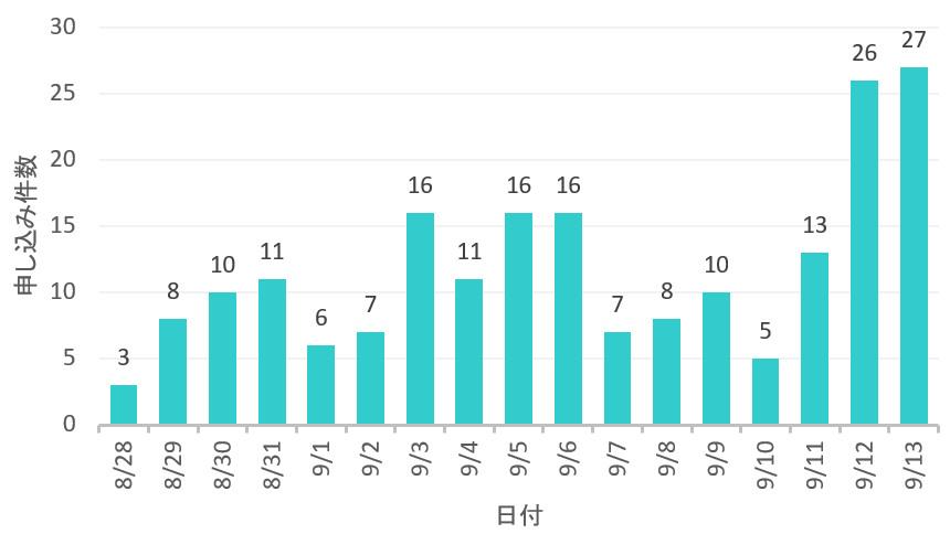 ※告知開始:8月28日、サークル参加申込満了:9月13日、イベント当日:9月20日でした。