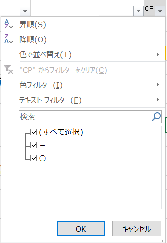 下図のようにExcelのフィルターを使って(便利な機能ですね)、