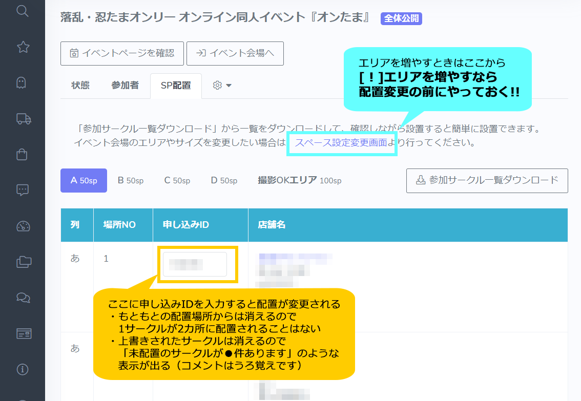 ■同CP内では申し込みが早かった順に入口に近くなるよう配置しました。申込み順はExcelで確認しました。